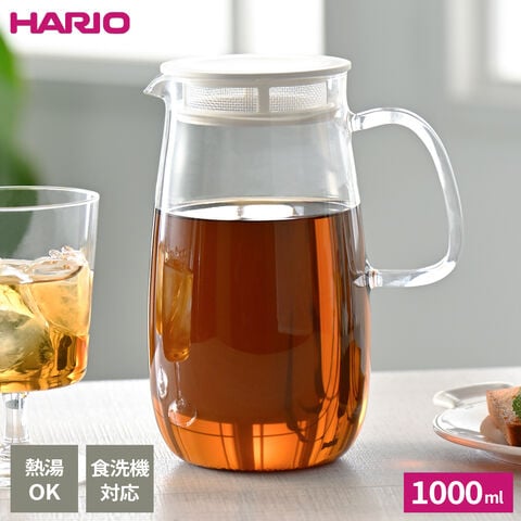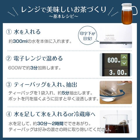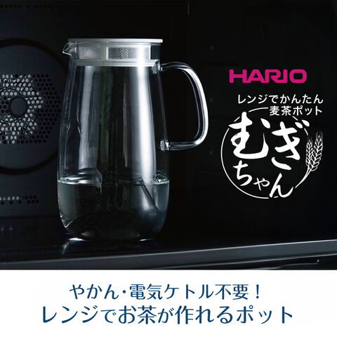HARIO ハリオ レンジでかんたん麦茶ポット むぎちゃん 1000ml ホワイト XMP-1000-W | お茶ポット 冷水筒 耐熱 ガラス 食洗機対応 日本製 1L 1リットル レンジ調理 電子レンジ対応 茶こし付き 麦茶 緑茶 だし汁 ほうじ茶 紅茶 湯沸かし