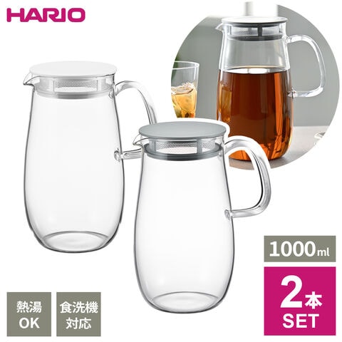HARIO ハリオ レンジでかんたん麦茶ポット むぎちゃん 2本セット 1000ml ホワイト×ダークグレー XMP-1000-W/XMP-1000-DGR | お茶ポット 冷水筒 耐熱 ガラス 食洗機対応 日本製 1L 1リットル 電子レンジ対応 茶こし付き 麦茶 紅茶 緑茶 ほうじ茶 湯沸かし