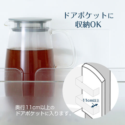 ドアポケットに奥行11cm以上の冷蔵庫ドアポケットに収まるサイズです。