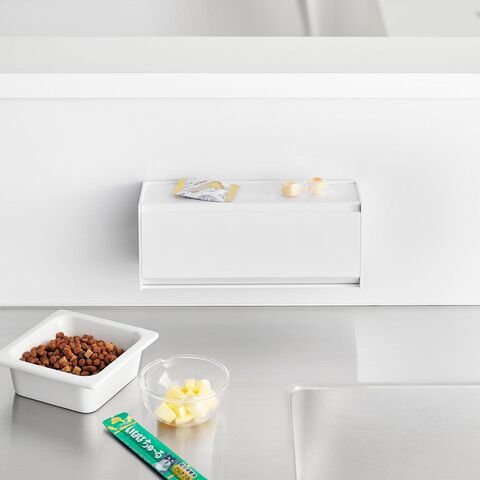 冷蔵庫横やペット用品をまとめたスチールワゴンなどに設置しておけば、おやつを与えたい時にすぐに準備することができます。
