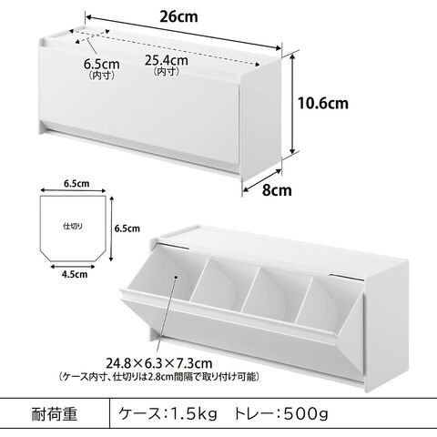 内寸サイズ(約):ケース/W24.8×D6.3×H7.3cm 仕切り間隔/W2.8cm