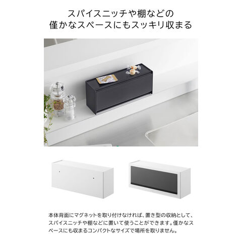 本体の背面にマグネットを取り付けなければ、置き型の収納ケースとして、スパイスニッチや棚などに置いて使用できます。