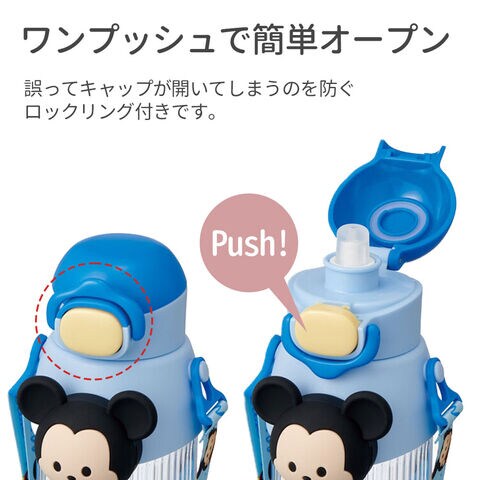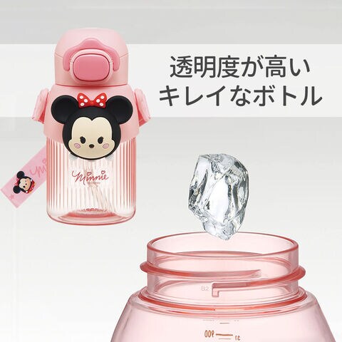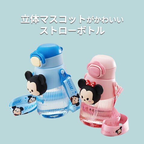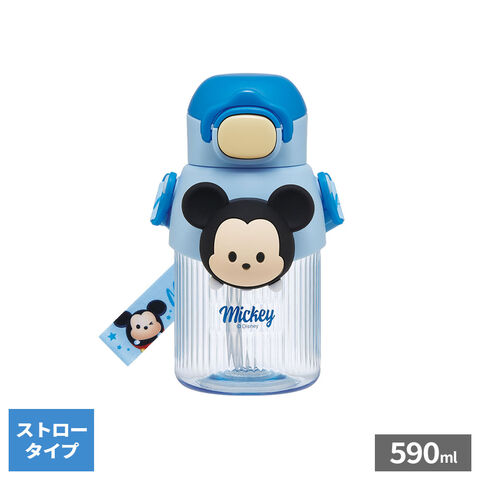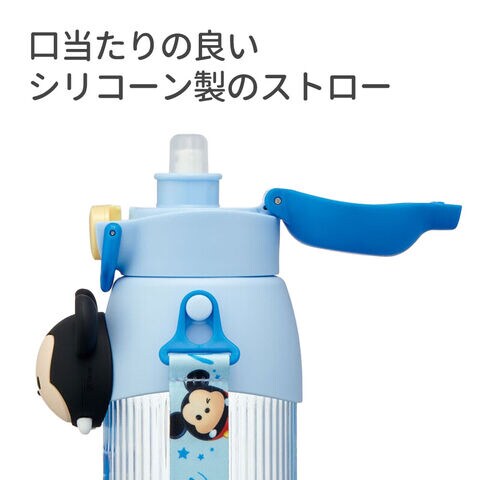 立体マスコット付ストローボトル 590ml ツムツムミッキー PMSHP6 | 水筒 キャラクター ストロー付き シリコン ワンタッチ クリアボトル 肩ひも付き ツムツム かわいい 子ども 幼児 キッズ