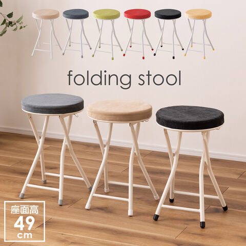 折りたたみ椅子 ロンダ スツール グリーン PC-31GR | 折り畳み フォールディング 腰掛け イス いす 円形 軽量 ベロア調生地 クッション 座面 高さ49cm 直径30cm 丸椅子 来客 ダイニング 作業 キッチン おしゃれ 北欧