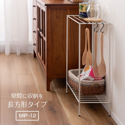 オープンシェルフ ラック 幅45×奥行22×高さ65cm ホワイト MIP-12WH | 2段 オープンラック スチールラック 飾り棚 ワイヤーラック 隙間 収納 省スペース ディスプレイ シンプル おしゃれ 玄関 リビング キッチン