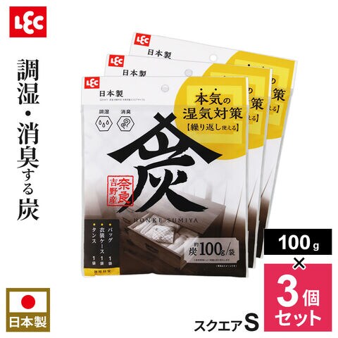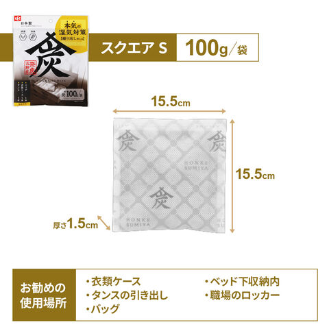 調湿・消臭木炭 本家炭屋 スクエアタイプ S ×3個セット | 調湿炭 調湿剤 消臭炭 消臭剤 吉野産炭 すみ 国産木材 繰り返し使える エコ 炭 環境に優しい 湿気とり 湿気対策 タンス 引き出し 衣装ケース バッグ ロッカー