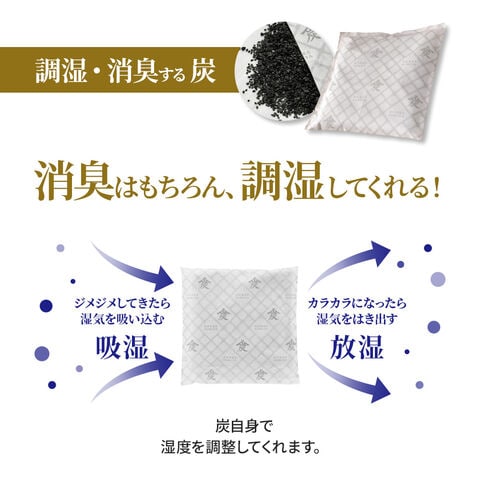 嫌なニオイを除去してくれる!消臭力にも優れており、炭の持つ吸着作用で、生活空間にこもる不快なニオイを抑えます。