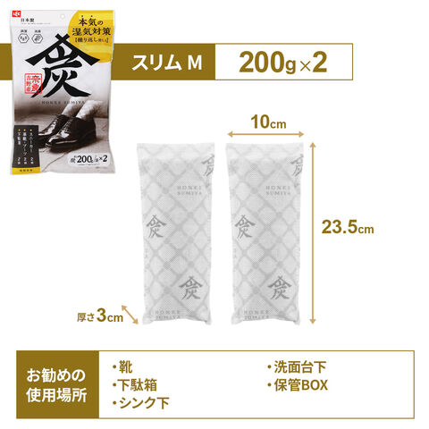 調湿・消臭木炭 本家炭屋 スリムタイプ M (2袋入) | 調湿炭 調湿剤 消臭炭 消臭剤 吉野産炭 すみ 国産木材 繰り返し使える エコ 炭 環境に優しい 湿気とり 湿気対策 靴 スニーカー 下駄箱 シンク下 洗面台下 衣装ケース