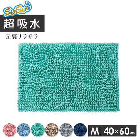 足ふきマット SUSU 抗菌ストロングWバスマット EC (M 40×60cm) グリーン | 足拭き タオル 足ふき マイクロファイバー お風呂マット バスルーム 脱衣所 抗菌 速乾 吸水 乾く SUSU マイクロ繊維 もこもこ モール 洗える