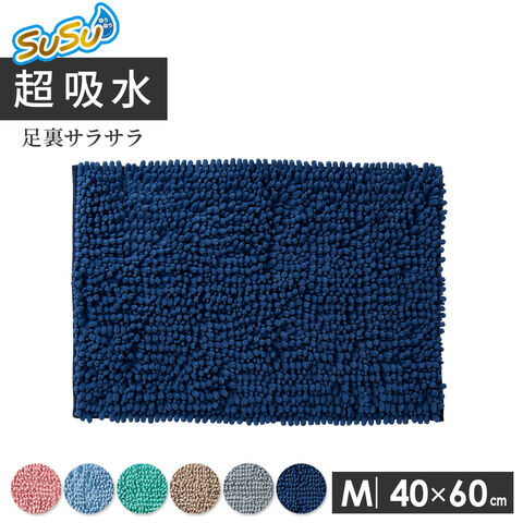 足ふきマット SUSU 抗菌ストロングWバスマット EC (M 40×60cm) ネイビー | 足拭き タオル 足ふき マイクロファイバー お風呂マット バスルーム 脱衣所 抗菌 速乾 吸水 乾く SUSU マイクロ繊維 もこもこ モール 洗える