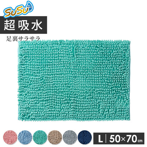 足ふきマット SUSU 抗菌ストロングWバスマット EC (L 50×70cm) グリーン | 足拭き タオル 足ふき マイクロファイバー お風呂マット バスルーム 脱衣所 抗菌 速乾 吸水 乾く SUSU マイクロ繊維 もこもこ モール 洗える
