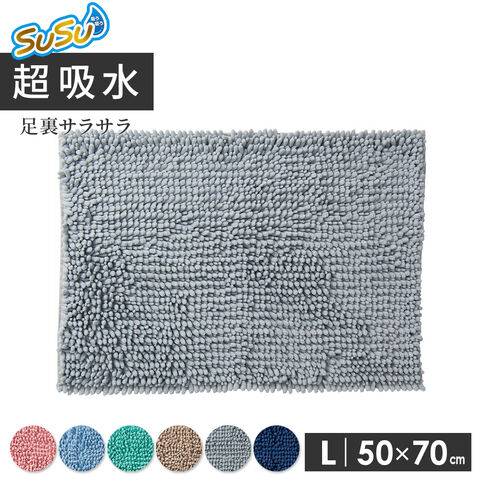 足ふきマット SUSU 抗菌ストロングWバスマット EC (L 50×70cm) グレー | 足拭き タオル 足ふき マイクロファイバー お風呂マット バスルーム 脱衣所 抗菌 速乾 吸水 乾く SUSU マイクロ繊維 もこもこ モール 洗える