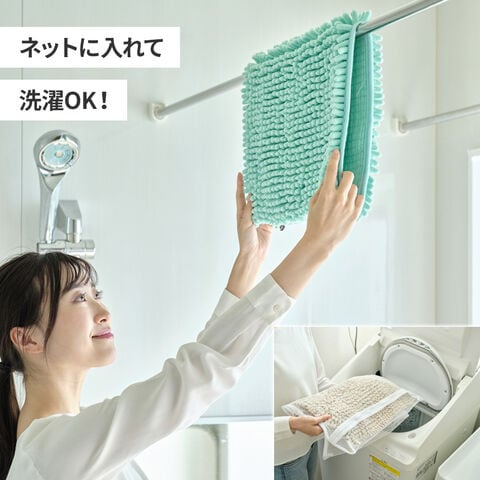 ボリューム感のある太モールと乾きやすい細モールを組み合わせ、吸水量アップとふわふわの踏み心地が実現。