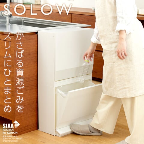 ゴミ箱 SOLOW ソロウ 通路で使えるペダル分別ストッカー2段 45L ブラック | ごみ箱 分別ゴミ箱 ダストボックス 薄型 通路における ペダル式 おしゃれ 45リットル キャスター付き ワイド 容器内分別 抗菌 日本製 賃貸 オムツ収納