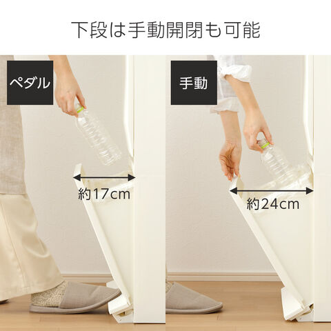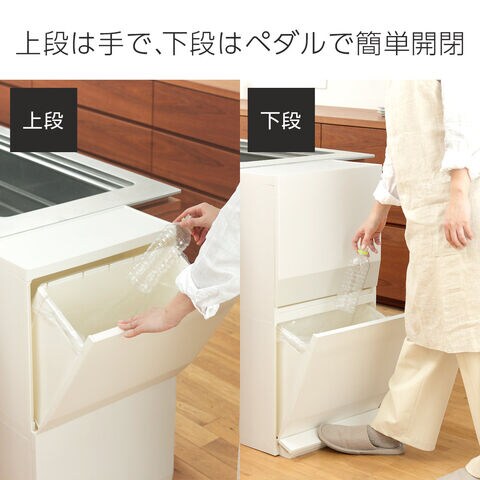 上段は手で、下段はペダルで開閉ができるので、ゴミが捨てやすい。