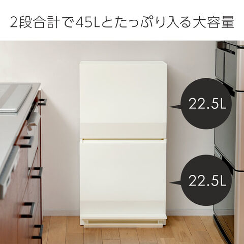 2段合計45Lでたっぷり入る1段22.5Lの、計45Lサイズ。