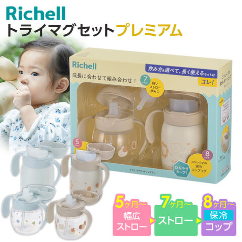 リッチェル ベビーマグ トライ マグセットプレミアム ライトグレー | 保冷マグ ステンレスマグ プラスチック ストローマグ コップ飲み おしゃれ 赤ちゃん 5ヶ月頃~ 男の子 女の子 持ち手付き 熱中症対策 Richell 水分補給 ベビー用品 Richell