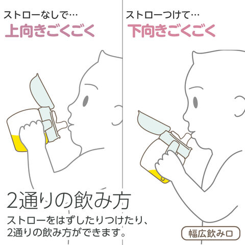幅広飲み口は、口をすぼめて飲む練習ができます。