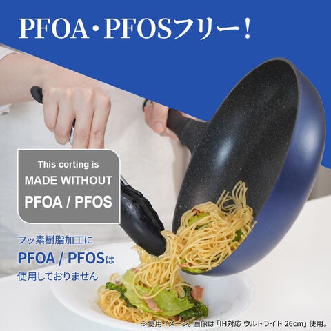 PFOAフリー!ふっ素樹脂塗膜加工にPFOAは使用しておりませんので、安心してお使いいただけます。