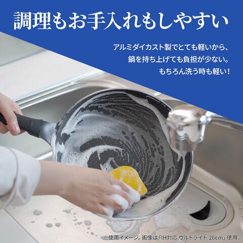 アルミダイカスト製で軽い丈夫で変形しにくいアルミダイカスト製。IH対応なのにとっても軽い!
