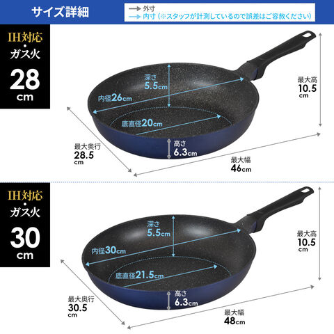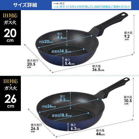 材質:本体/アルミニウム合金 内面/ふっ素樹脂塗膜加工(Wマーブル) 外面/焼付塗装 底面/ステンレス鋼 ハンドル/フェノール樹脂