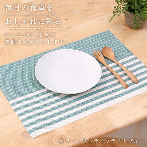 Pasuto ランチョンマット 45×30cm ストライプブルー 4枚セット | おしゃれ 敷物 水洗いOK 汚れに強い お手入れ簡単 イベント 来客 パーティ 幼稚園 小学校 食卓の彩り ファブリック ストライプ