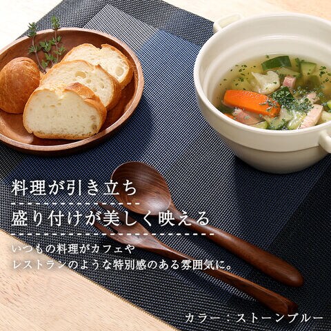 テーブルがすっきり1人分の食事スペースがきちんと整い、雑多に見えがちな食卓が美しくなります。