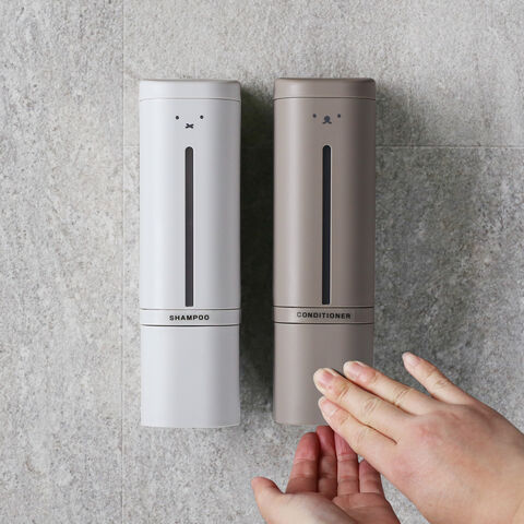 【2024年改良版】壁に浮かせて取り付けられる詰め替えボトル。揃えてスッキリ【2個セット】+オリジナルラベルシール付き