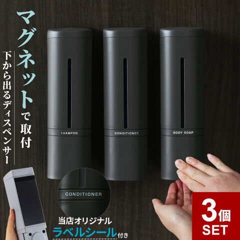 hover 下から出るマグネットディスペンサー リキッド 3個セット 500ml | シャンプーボトル 詰め替え 磁石 入れ替え 液体 ボトル 容器 ポンプ プッシュ ボタン 風呂 壁面 浮かせて 浴室 トリートメント リンス ミッフィー ボリス