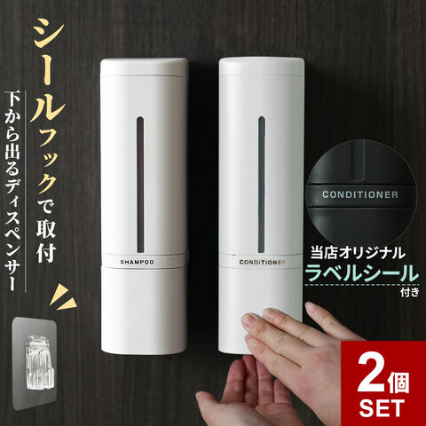 hover 下から出るシールフックディスペンサー リキッド 2個セット 500ml | シャンプーボトル 詰め替え シール 入れ替え 液体 ボトル 容器 ポンプ プッシュ ボタン 風呂 壁面 浮かせて 浴室 トリートメント リンス