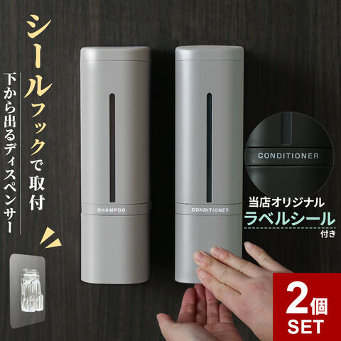 hover 下から出るシールフックディスペンサー リキッド 2個セット 500ml | シャンプーボトル 詰め替え シール 入れ替え 液体 ボトル 容器 ポンプ プッシュ ボタン 風呂 壁面 浮かせて 浴室 トリートメント リンス