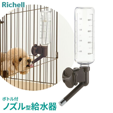 リッチェル 給水器 Nウォーターノズル ボトル付 470ml ダークブラウン | 犬用 ケージ取り付け 給水しやすい ペット 給水 サークル ケージ取り付け スタンド 体高 高さ自在 エコ 電源不要 飲んだ分だけ給水 掃除ラク ボトル