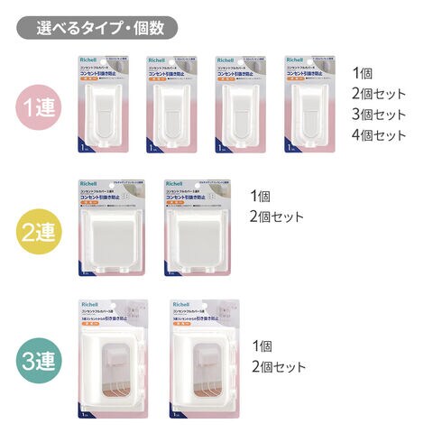 リッチェル コンセントカバー ベビーガード コンセントフルカバー R | コンセントガード 1口~3口 赤ちゃん コンセント 隠す 塞ぐ 引き抜き 感電防止 お子様 子供 ほこり リビング 安心