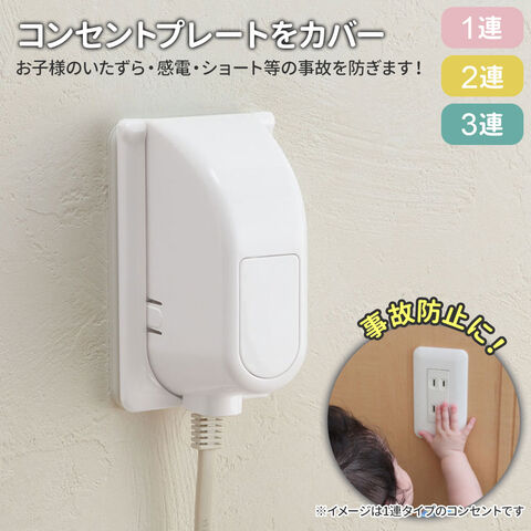 コンセントプレートに取り付けて、お子様のいたずらによる引き抜きや感電を防ぐためのカバー。