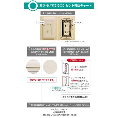 コンセントのプレートやプラグの形状、サイズによっては取り付け、使用ができない場合がありますので注意してください。