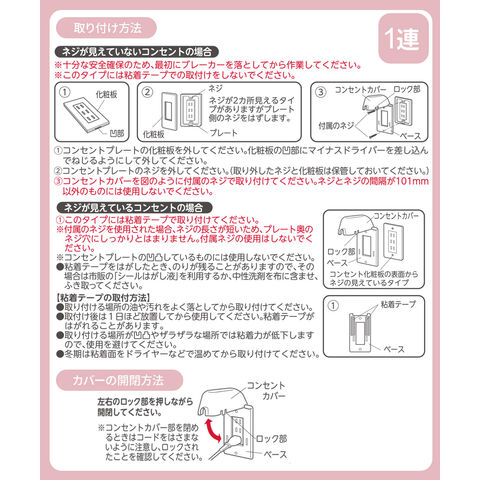 粘着テープ付きネジが見えているコンセントの場合、粘着テープで取り付けが可能です。