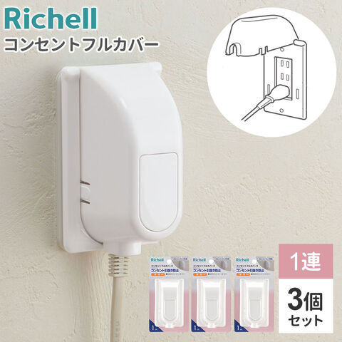 リッチェル コンセントカバー ベビーガード コンセントフルカバー R 3個セット | コンセントガード 1口~3口 赤ちゃん コンセント 隠す 塞ぐ 引き抜き 感電防止 お子様 子供 ほこり リビング 安心