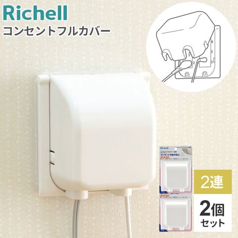 リッチェル コンセントカバー ベビーガード コンセントフルカバー 2連R 2個セット | コンセントガード 2列 赤ちゃん コンセント 隠す 塞ぐ 引き抜き 感電防止 お子様 子供 ほこり リビング 安心