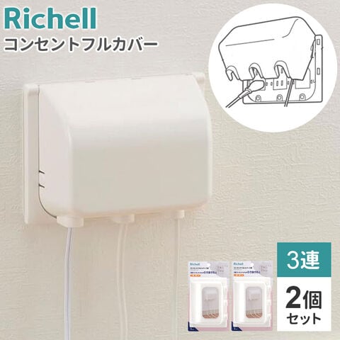 リッチェル コンセントカバー ベビーガード コンセントフルカバー 3連R 2個セット | コンセントガード 3列 赤ちゃん コンセント 隠す 塞ぐ 引き抜き 感電防止 お子様 子供 ほこり リビング 安心