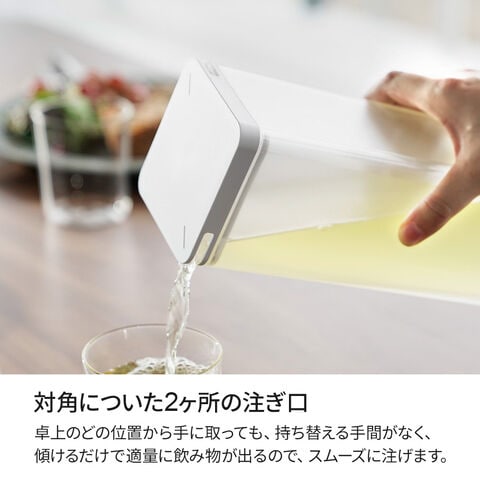 対角に2ヶ所ついた注ぎ口が便利注ぎ口が対角についており、傾けるだけで飲み物が適量に出てきます。