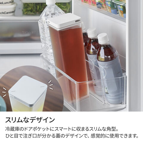 スリムなデザイン冷蔵庫のドアポケットにスマートに収まるスリムな角型。