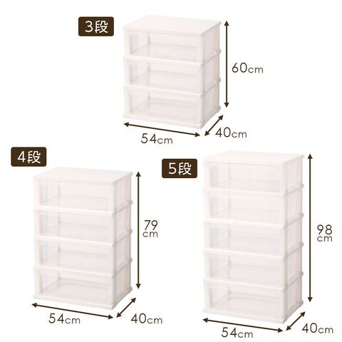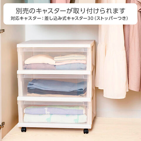 衣装ケース ストッカーワイド 組立式 4段 ホワイト | 収納ケース 引き出し プラスチック 日本製 幅54cm 高さ79cm 奥行40cm チェスト クローゼット 押し入れ収納 キャスターつき 引出し収納