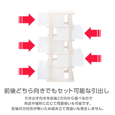 前後どちら向きでもセット可能引き出す向きを前後2方向から選べるので、用途や場所に応じて両面使いも可能。