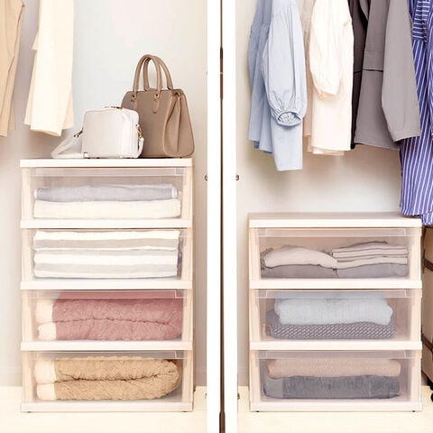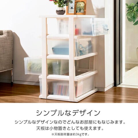 衣類収納にぴったりなプラスチック製の収納ケース。【4段】