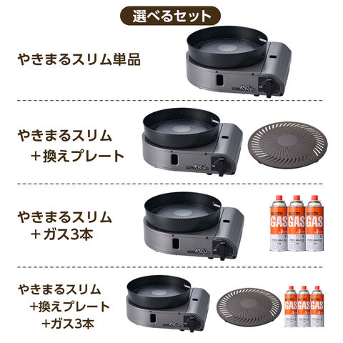 セット内容カセットガススモークレス焼肉グリル やきまるスリム(CB-SLG-3)、イワタニカセットガス3本組