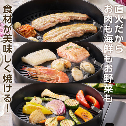 直火だからお肉が美味しく焼ける!直火だからプレートの表面温度の立ち上がりが早く、お肉がこんがり美味しく焼けます。