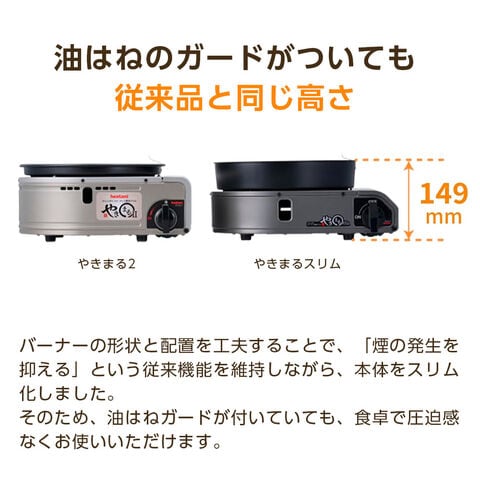 イワタニ スモークレス焼肉グリル やきまるスリム(純正カセットガス3本つき) CB-SLG-3 | カセットコンロ 焼肉コンロ 卓上コンロ 油ハネガード 鉄板 Iwatani イワタニ 日本製 煙 少ない 薄型 お手入れ簡単
