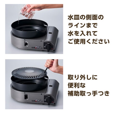 煙の発生を少なく抑え、室内で手軽に焼肉が楽しめる!カセットガス式焼肉グリル。すぐに肉が焼ける、純正カセットガス付き2点セット。