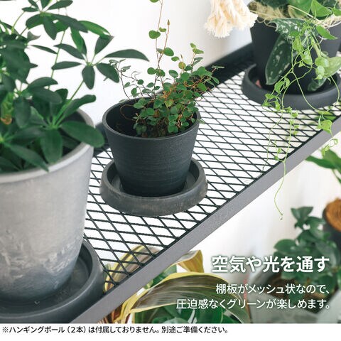 空気や光を通す棚板がメッシュ状なので空気や光を通し、圧迫感なくグリーンを楽しむことができます。