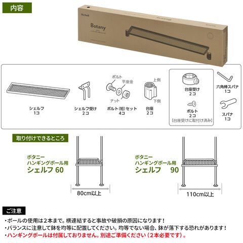 リッチェル ボタニー ハンギングポール用 シェルフ 幅90 ブラック | 観葉植物 突っ張り 棚 90cm幅 飾る おしゃれ ハンギングポール部品 屋内 室内 プランター 鉢 グリーン 吊るす ポールハンガー 吊鉢 ひっかけ インテリア 拡張パーツ